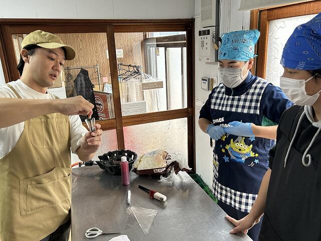 12月16日(火)の課題研究発表会で、校内販売をする予定です。チョコレートやお菓子等を使い、それぞれの考えたデコレーションをしました。 店長の村上様には、お店が休みの日にわざわざ、私たちのために、お店を開けていただきました。また、準備をはじめ親切・丁寧にご指導していただきました。おかげ様で生徒たちも、とても喜んでおりました。大変ありがとうございました。
