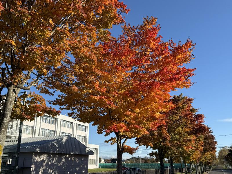 校舎周辺のイタヤカエデの紅葉がとてもきれいです。