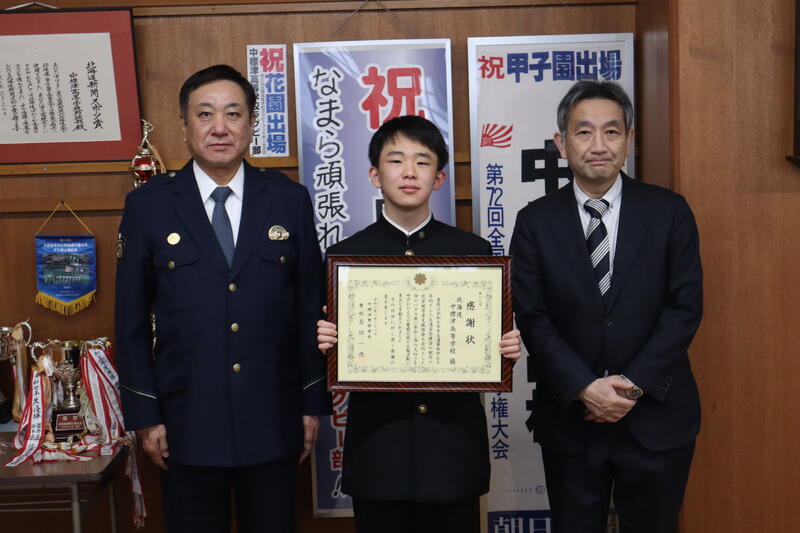 絆づくりメッセージコンクールの、写真メッセージ部門で大橋さん、ことばメッセージ部門で渡辺さんが、根室管内最優秀賞に選ばれ、表彰されました。