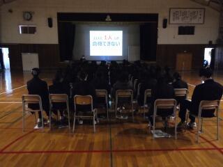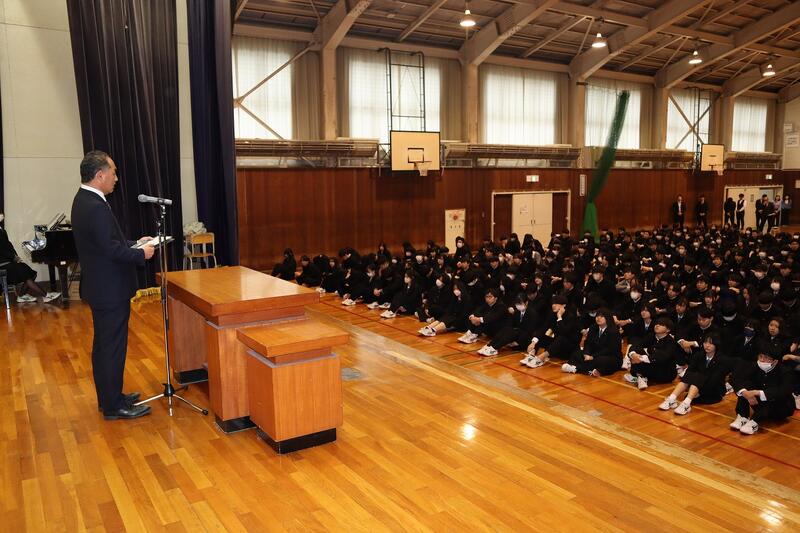12月23日(水)6時間目、体育館で冬季休業前集会を実施しました。
