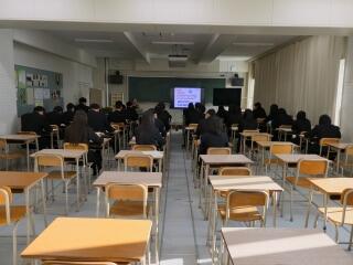 12月17日(水)、2学年対象の進路行事『スタートアップガイダンス』を5・6校時に実施しました。進路別に3講座を設け、生徒は進路希望に合わせて受講しました。国公私立大学・短期大学の受験講座では、東進衛星予備校より藤原一志様をお招きし、大学選択の考え方、最新の受験事情、入試に向けて受験勉強の計画をどう立てるかなどをお話いただきました。専門学校受験講座では、北海道情報専門学校より桂田光彰様をお招きし、専門学校の選び方、受験方法、オープンキャンパスの重要性や学費に関することなどをお話いただきました。就職講座では、北海道教育庁根室教育局より平山明様をお招きし、就職するまでの流れ、就職の心構え、学校生活においての欠席や遅刻が影響を及ぼすことや企業が求める人物像などをお話いただきました。生徒たちは、真剣な面持ちで話を聞き、進路に向けての気持ちを新たにしていました。