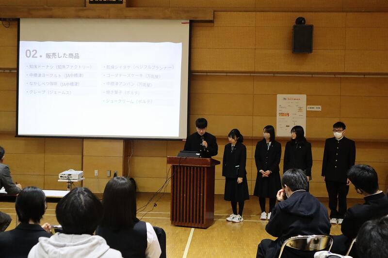 発表、2年生の商品開発の授業の取り組みや、企業と連携して開発