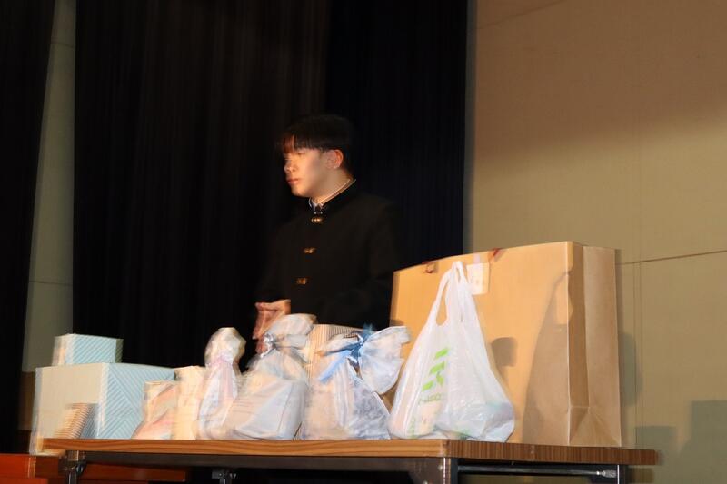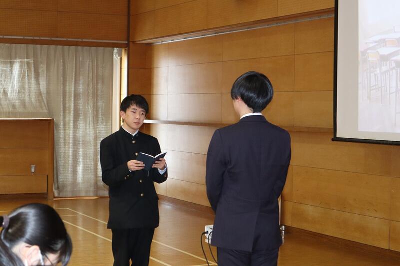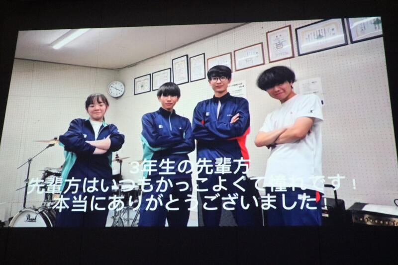 5時間目と6時間目、体育館で予餞会が行われました。有志によるダンスやバンド演奏、生徒会によるプレゼント抽選会、部活動の後輩から先輩へのメッセージビデオ、3学年担任団によるダンスが行われ3年生は大変盛り上がりました。なお、3年生は1月26日から家庭学習期間に入ります。