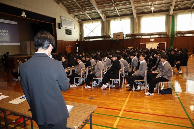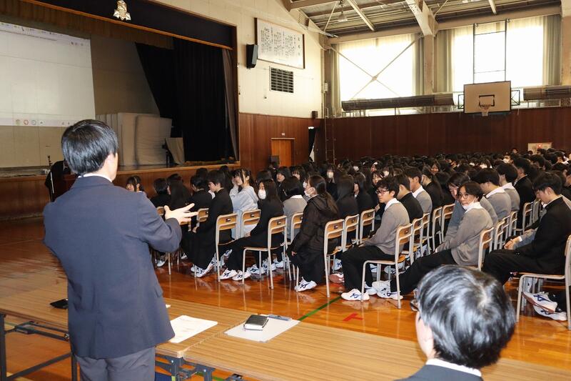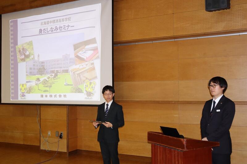 実施しました。生徒心得を遵守する意識の向上と制服の正しい着こなしを理解することを目的とし、講師に瀧本株式会社 札幌支店 伊藤 駿太 様をお迎えして多目的ホールで1・2学年を対象に実施しました。