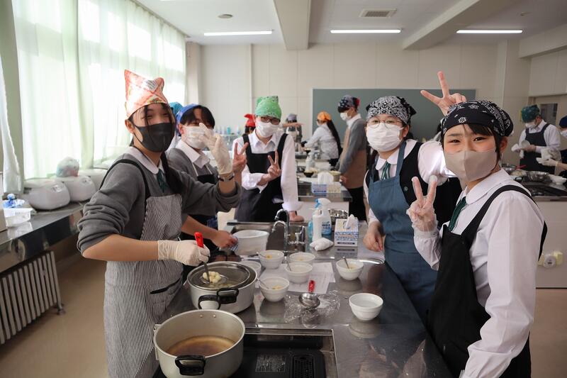 総合ビジネス科の2学年の調理実習の様子です。